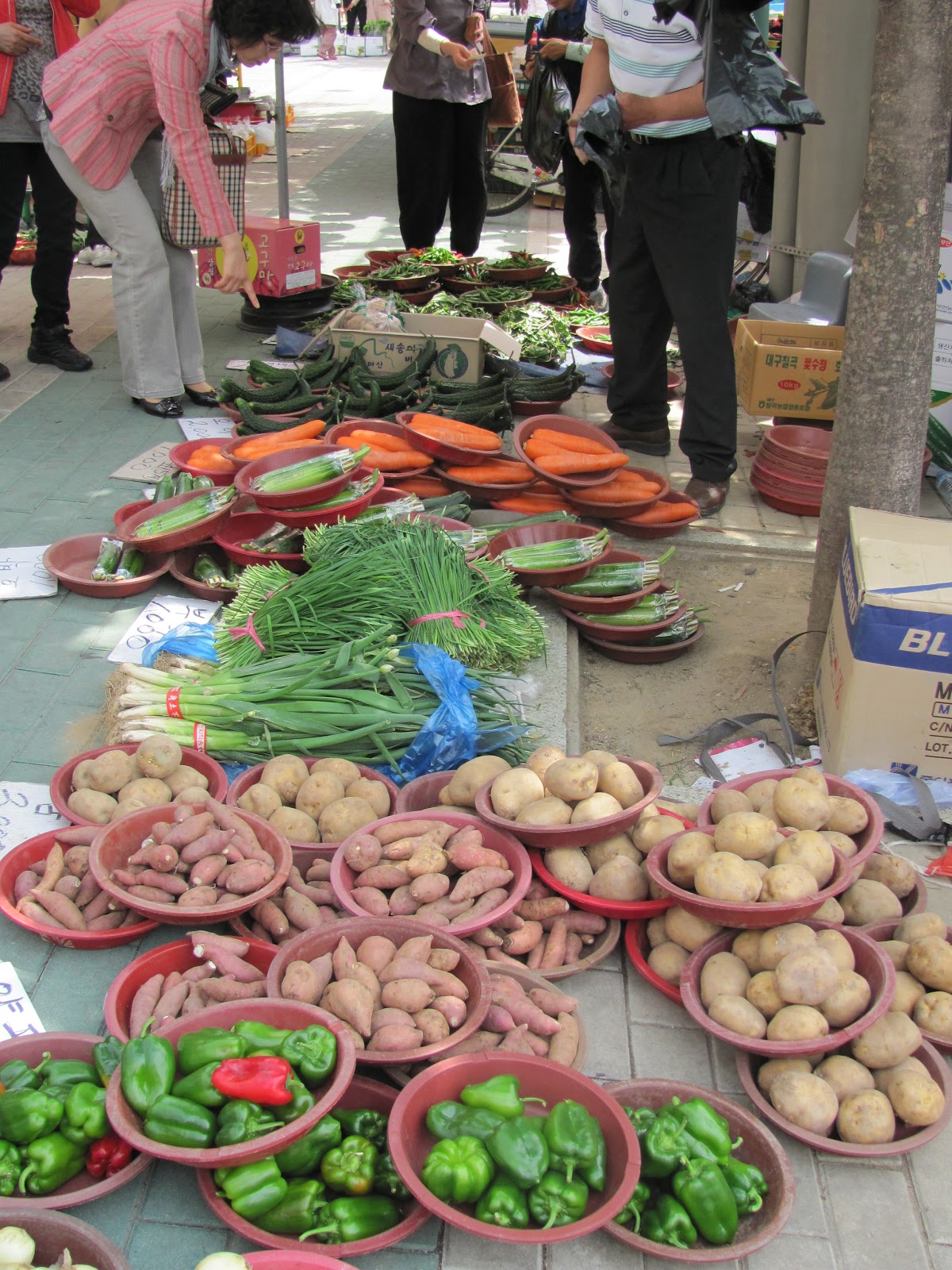 Along the sidewalks where people were starting to choose their places to catch the parade, the local growers were getting their vegetables lined up to sell. Beautiful home-grown vegetables!