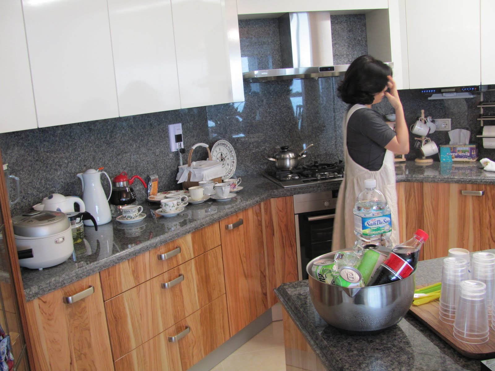 A good picture of an extremely upper-crust kitchen in this beautiful apartment. Notice the stove/oven. That's very unusual for most Korean apartments! This was truly a first class place. I can only imagine the cost. Most of these newer and more modern apartments are not rented as we think of it. They 'purchase' by giving a LARGE sum of money (can be upwards of $200K or more) to the owner/landlord. If that amount doesn't pay it in full I don't know how they work that out - but for the most part the large sum covers the price. Then while the people are living there the owner/landlord invests the money. In good times especially this can be quite advantageous for the owner/landlord. Now let's say the people decide to move in several years. They receive their money back from the owner/landlord, in full, and move on. The owner/landlord keeps whatever he's made off of their money in that time and turns around and does the same thing again.....