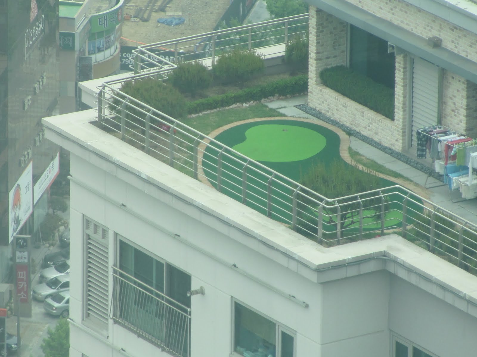 Interesting shot..... the adjacent building to her apartment.... and we're looking at the TOP of the building at the helicopter landing pad! This was as high as I'd personally care to be. All I could think of was the movie entitled 'The Towering Inferno'.... anyone remember that one?!